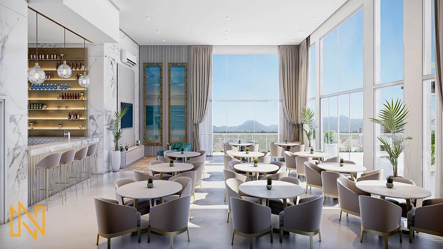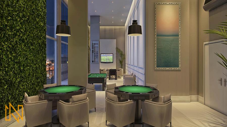 As área sociais deste são todas mobiliadas e decoradas, com piscina adulto e infantil, academia, salão de festas, sala de jogos, bar externo, sauna, spa, sala de massagem, playground e espaço pet.