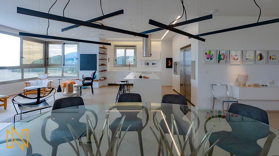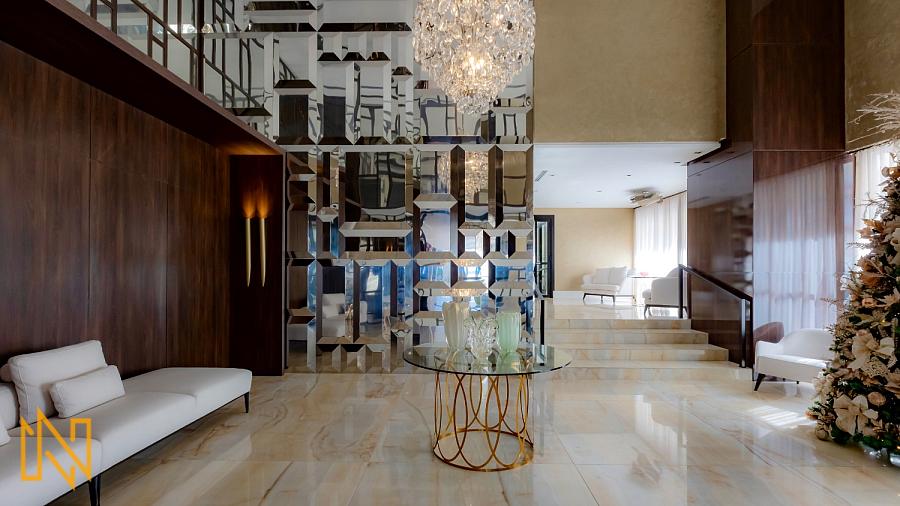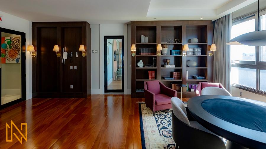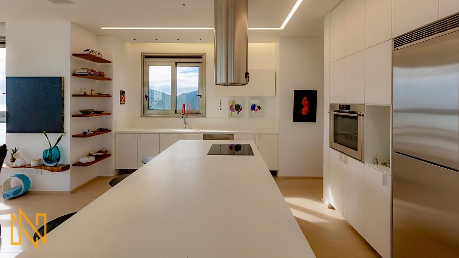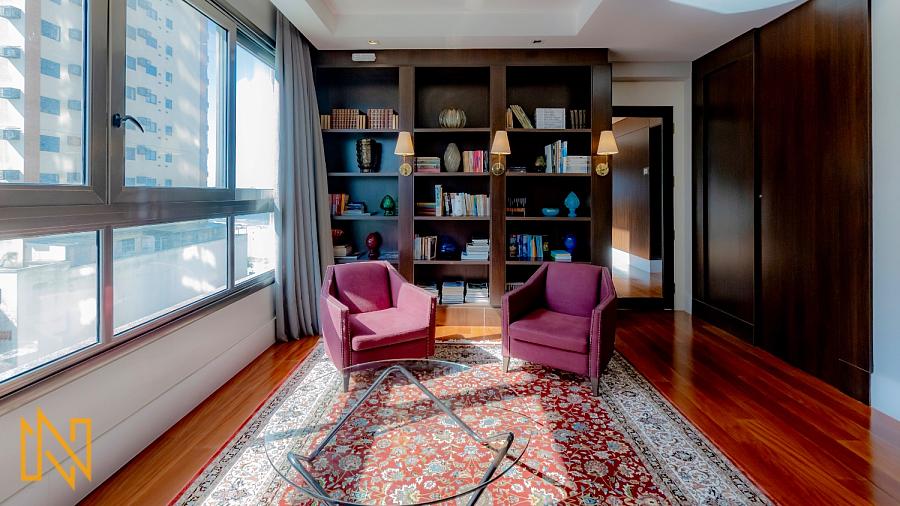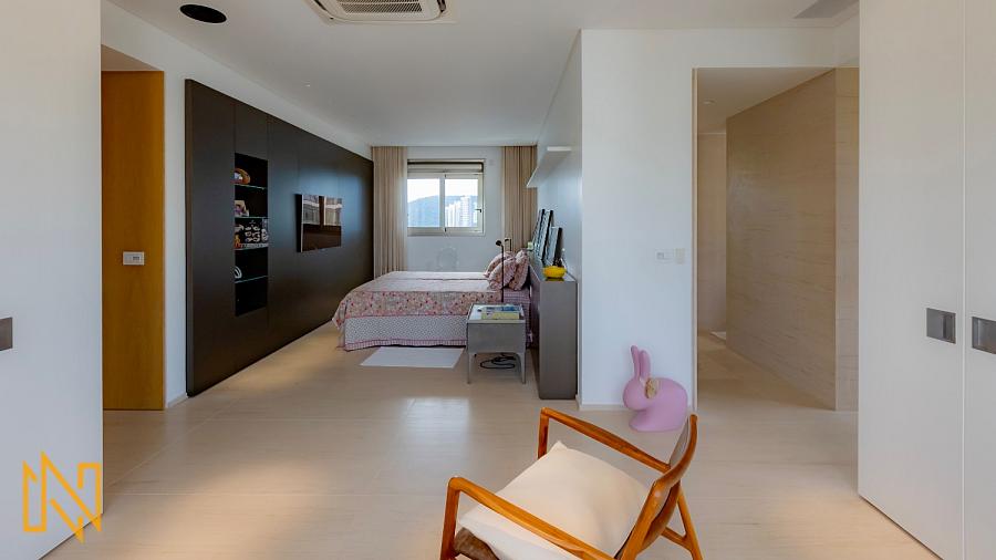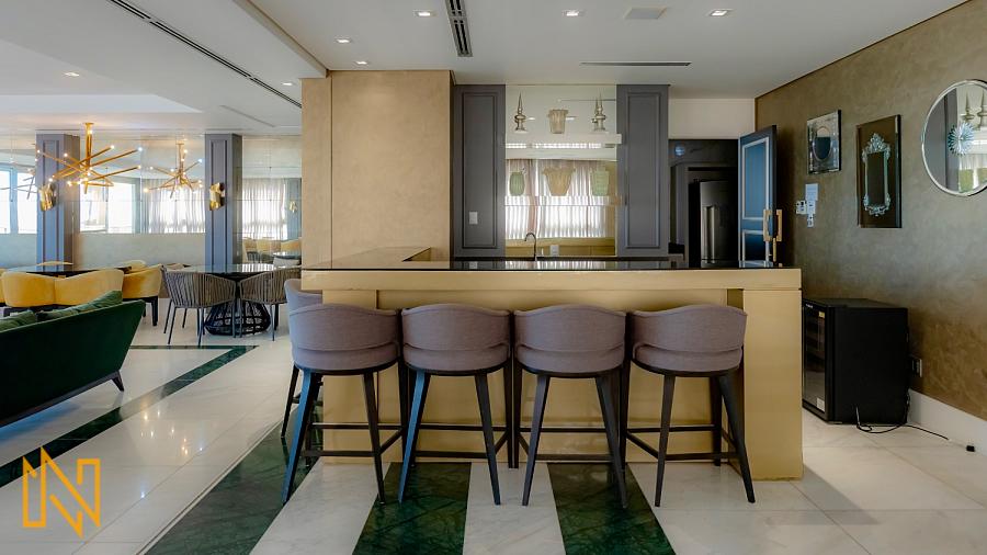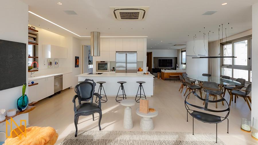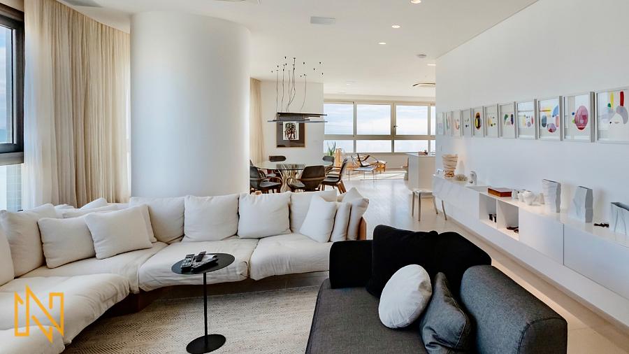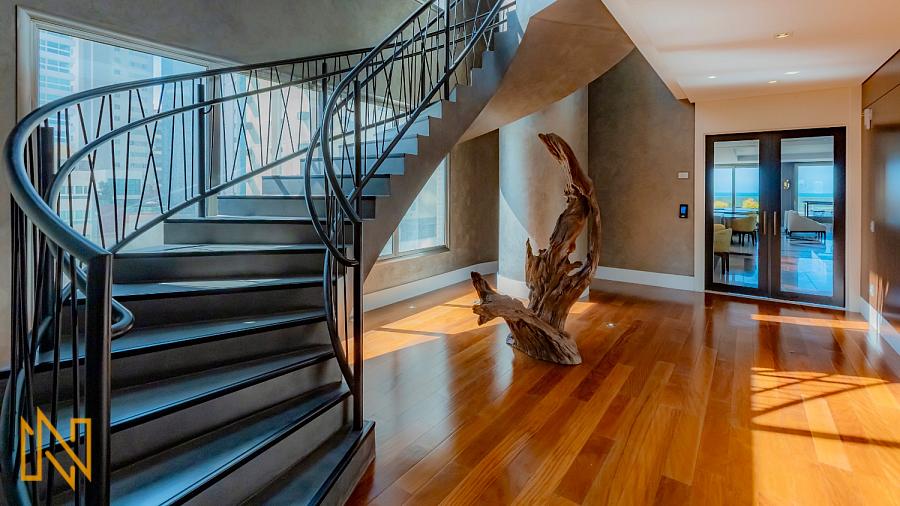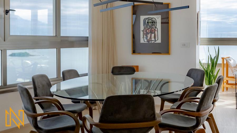 Tudo aqui respira sofisticação e funcionalidade. Quatro suítes amplas – incluindo a master com banheira de imersão e closet generoso –, lavabo social, living integrado que une sala de estar, sala de jantar e sala de TV em um ambiente fluido com vista total para a praia, cozinha gourmet equipada com churrasqueira a carvão e bancada ampla, área de serviço com dependência de empregada e banheiro próprio, além de cinco vagas de garagem privativas. Totalmente decorado e mobiliado, pronto para morar ou investir com imediata valorização.