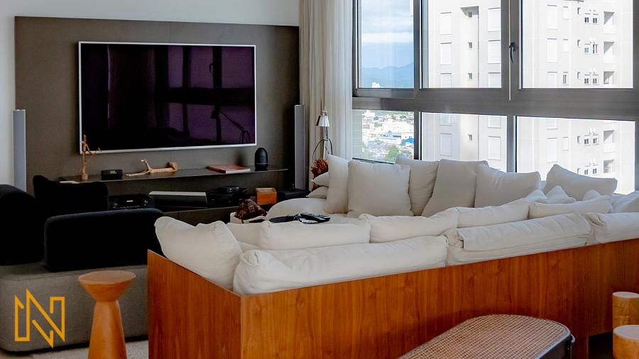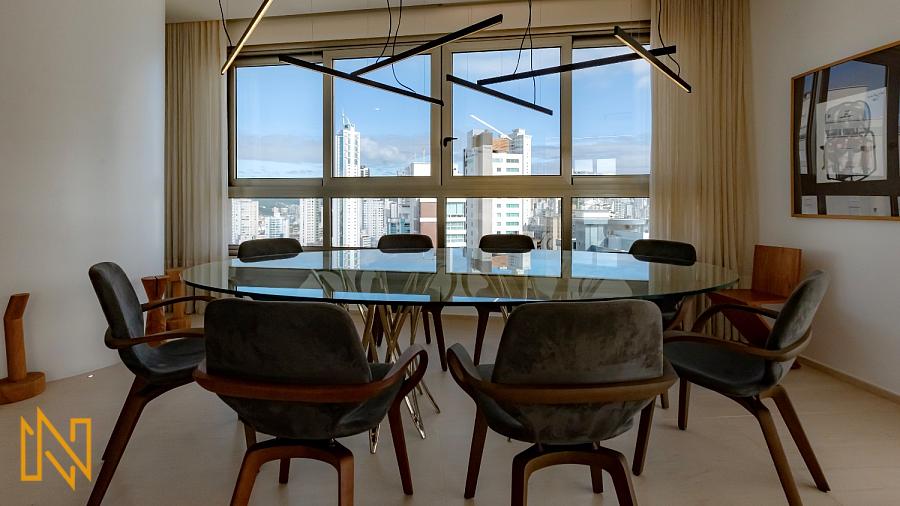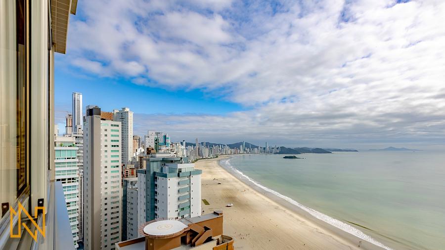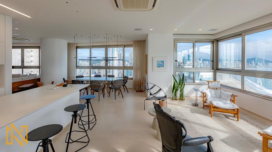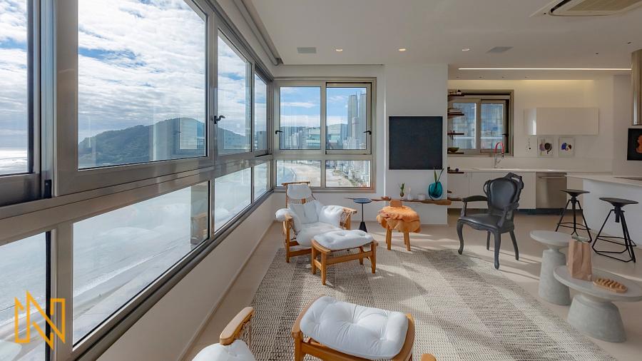 Imagine abrir as cortinas e ter o mar inteiro se revelando no living, com a areia da Praia Central a poucos passos e a brisa salgada entrando pela cozinha gourmet enquanto prepara um churrasco a carvão. Este apartamento de 255,44m² privativos (350m² totais) no Apogee, assinado pela renomada Cechinel Construtora, entrega o ápice do luxo à beira-mar: design contemporâneo, acabamentos que impressionam e uma vista panorâmica que faz cada dia começar com sensação de conquista.