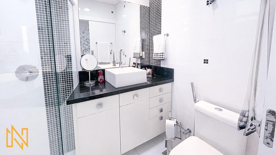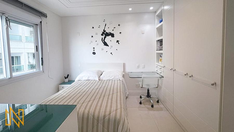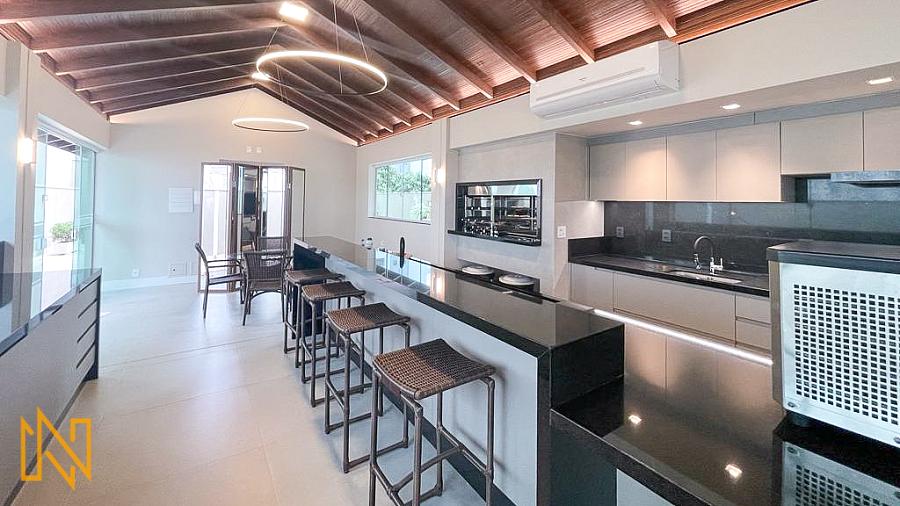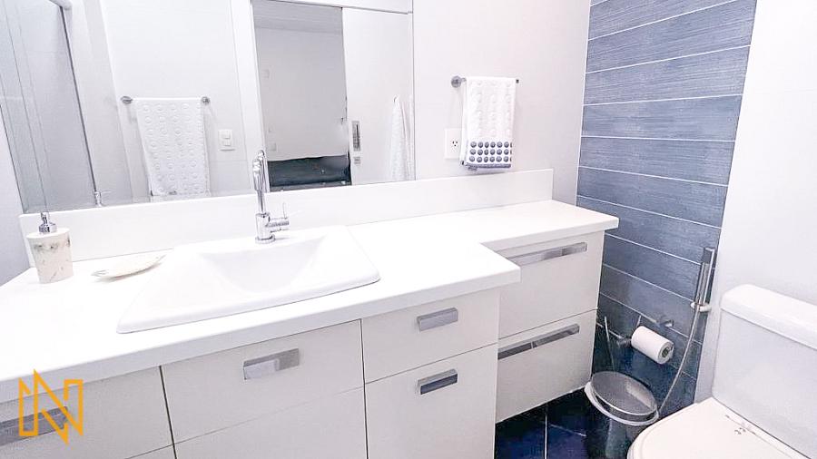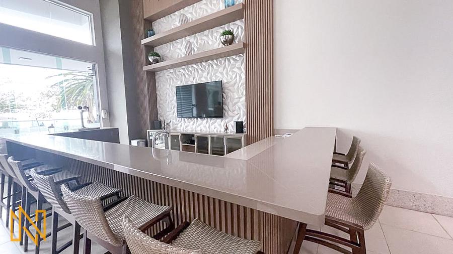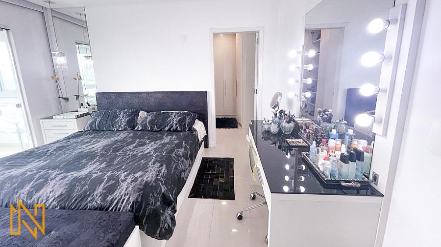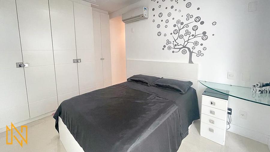 Acabamentos premium: Piso em porcelanato, móveis planejados, ar-condicionado, aquecimento de água e decoração completa.