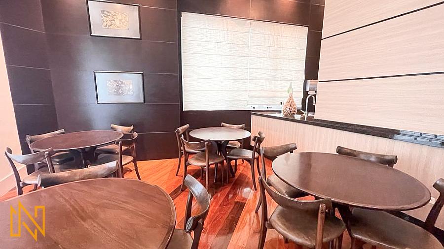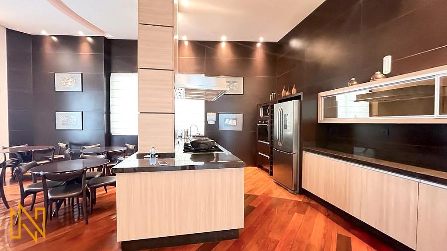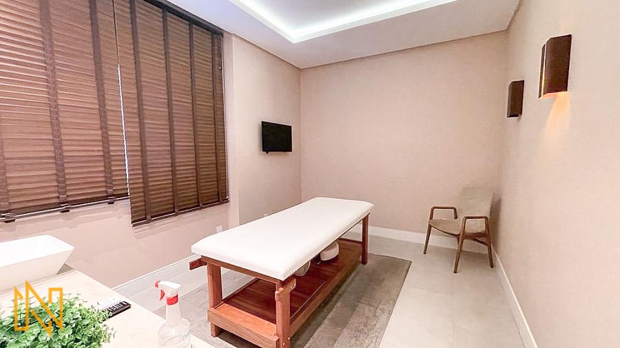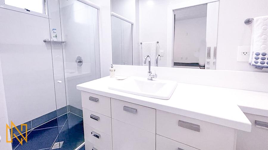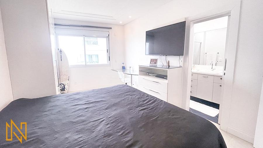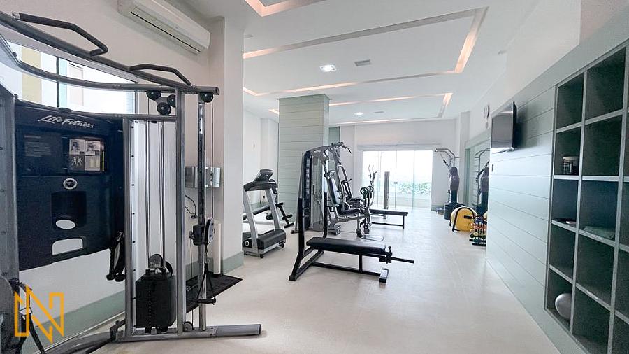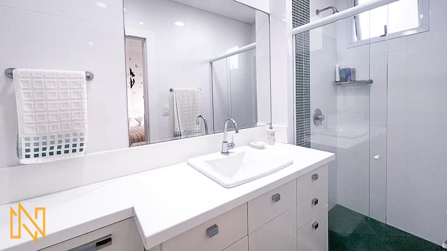Acabamentos premium: Piso em porcelanato, móveis planejados, ar-condicionado, aquecimento de água e decoração completa.