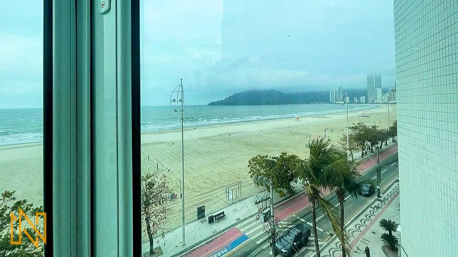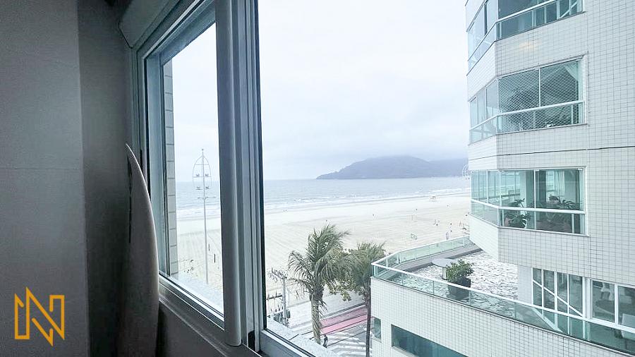 Sacada com vista mar: Equipada com churrasqueira a carvão, ideal para momentos de lazer com vista panorâmica.