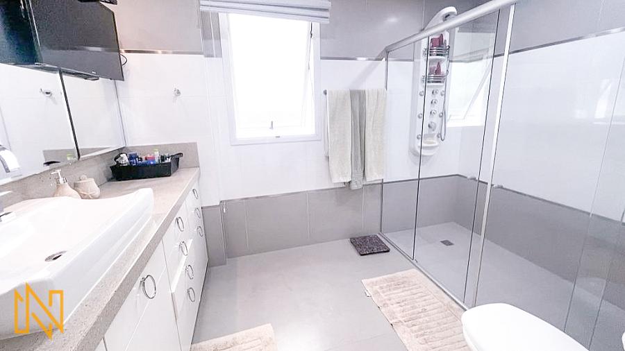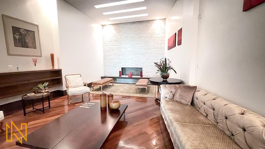 Espaço sofisticado: 233 m² de área privativa (332 m² totais), com 4 suítes amplas, incluindo suíte máster, e 5 banheiros (com lavabo).