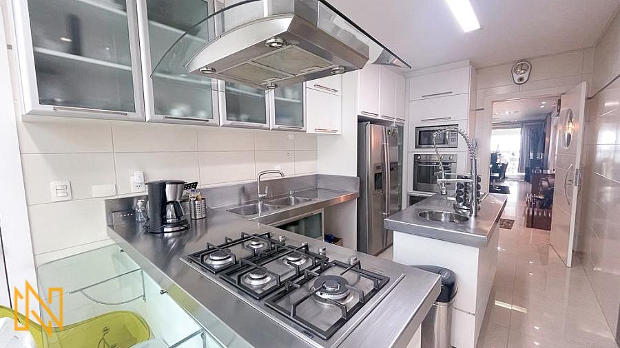 Ambientes integrados: Sala de estar e jantar, cozinha planejada, área de serviço, dependência de empregada, banheiro de serviço e entrada de serviço.