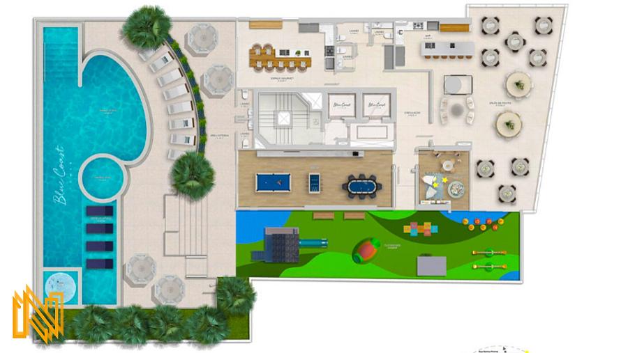 LAZER 01 com piscinas, espelho DÁgua, playground, sala de jogos, brinquedoteca, salão de festas com bar, espaço Gourmet