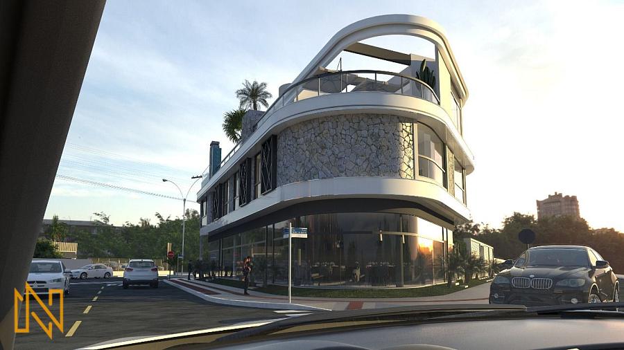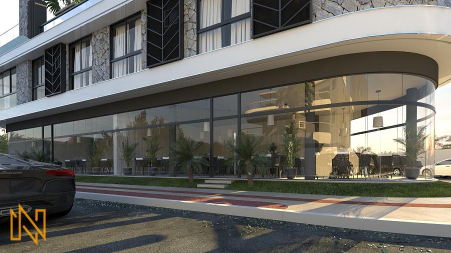 Empreendimento localizado na Avenida principal da Praia Brava rua reta ao mar.