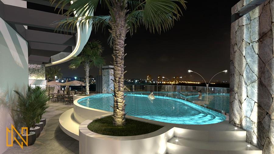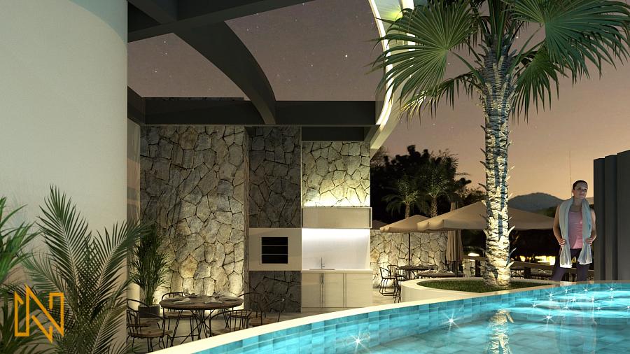 Dentre as áreas destinadas ao lazer destacam-se a piscina que proporciona vista exuberante para o mar e bem como área com churasqueira a carvão ideal para confraternizar com a família e amigos.