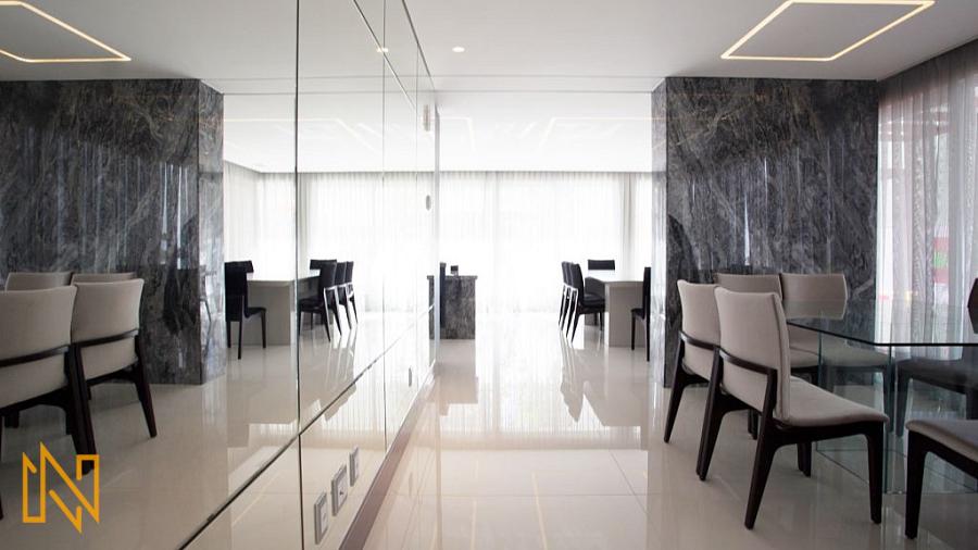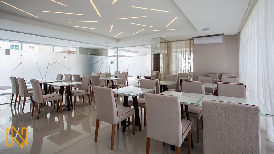Alto padrão em acabamento, portas laqueadas, com rebaixamento em gesso e piso porcelanato possui 142,91m² de área privativa com 2 suítes + 2 demi-suítes, sala para 2 ambientes, banheiro social, cozinha e 2 vagas de garagem privativas
