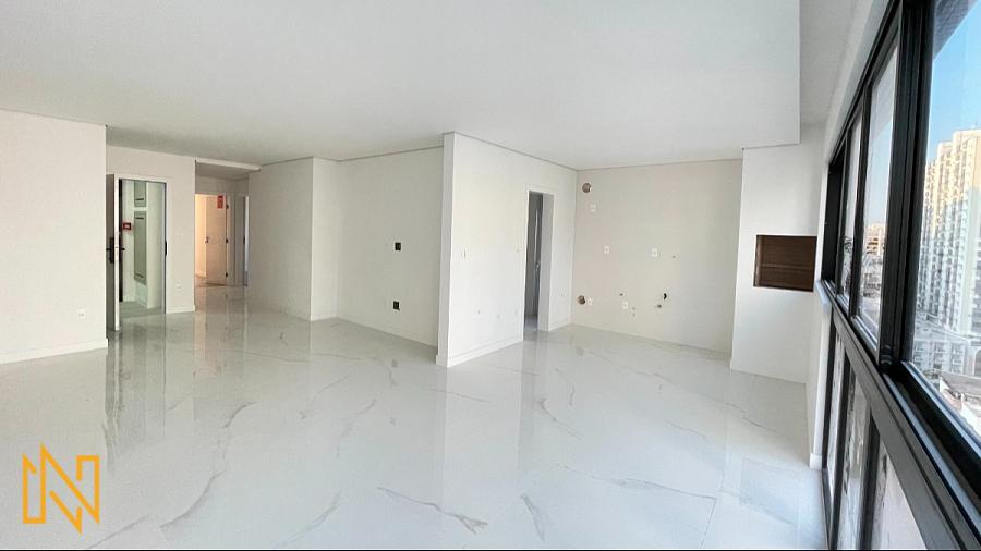 Apartamento sem mobilia, com 112,32m² de área privativa, com 3 suítes , lavabo, ampla cozinha, living três ambientes, área de serviço, churrasqueira a carvão integrada na sacada e duas vagas de garagem.