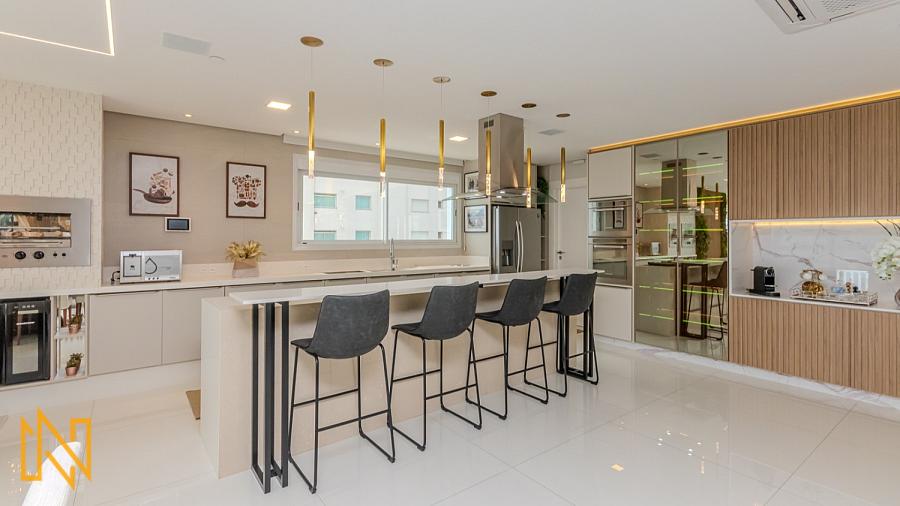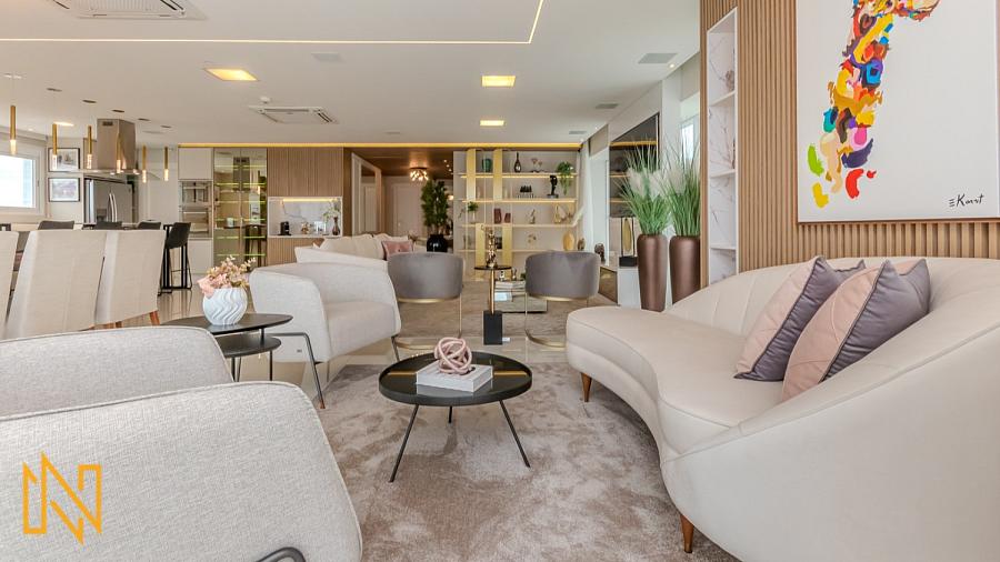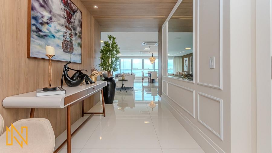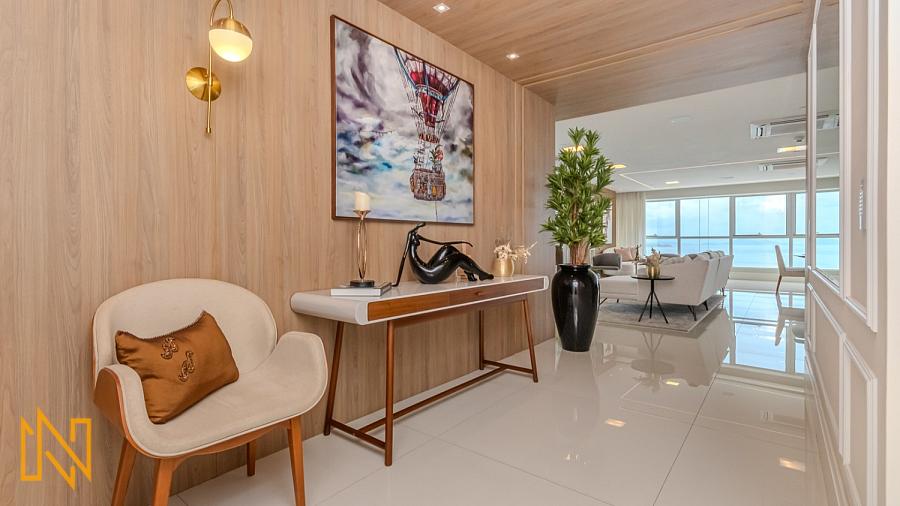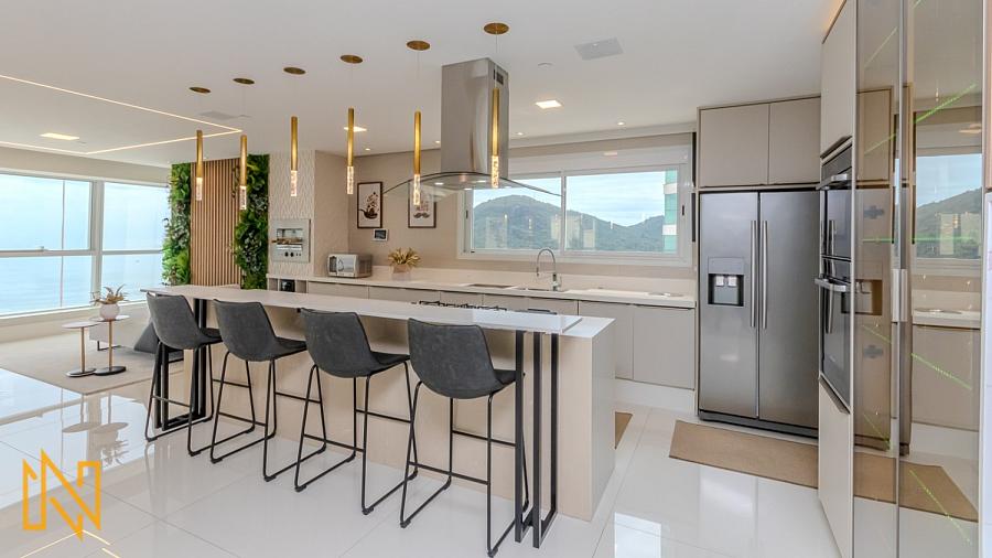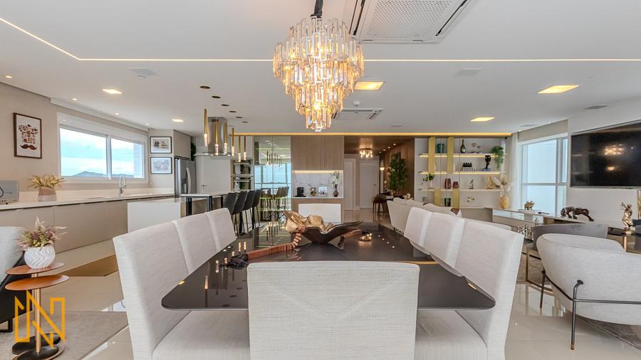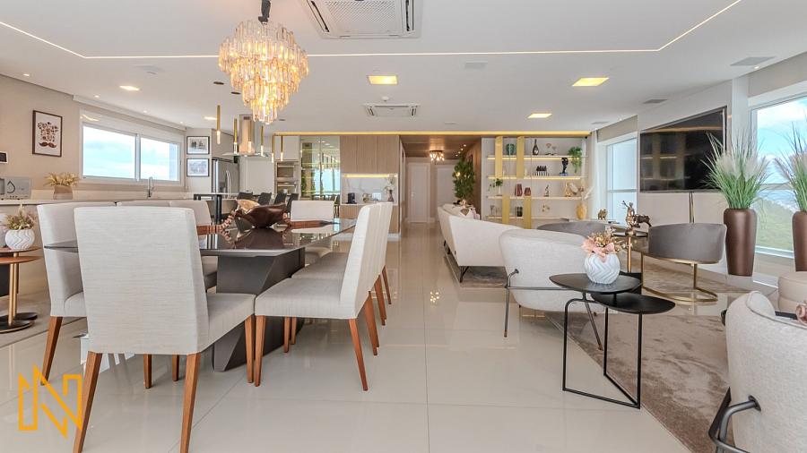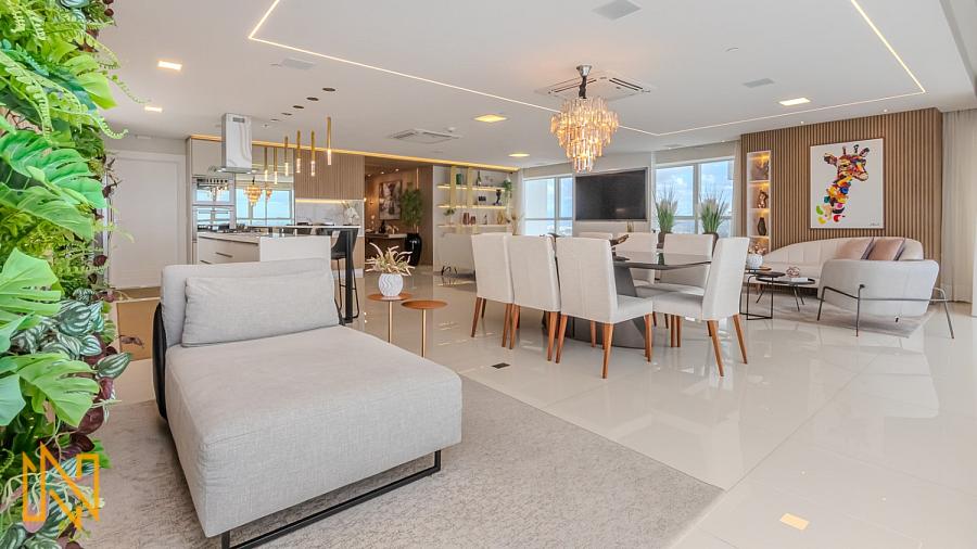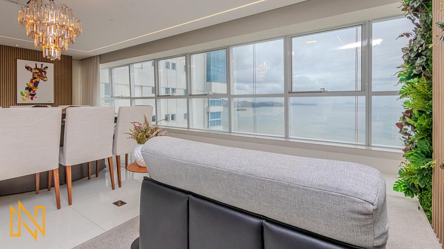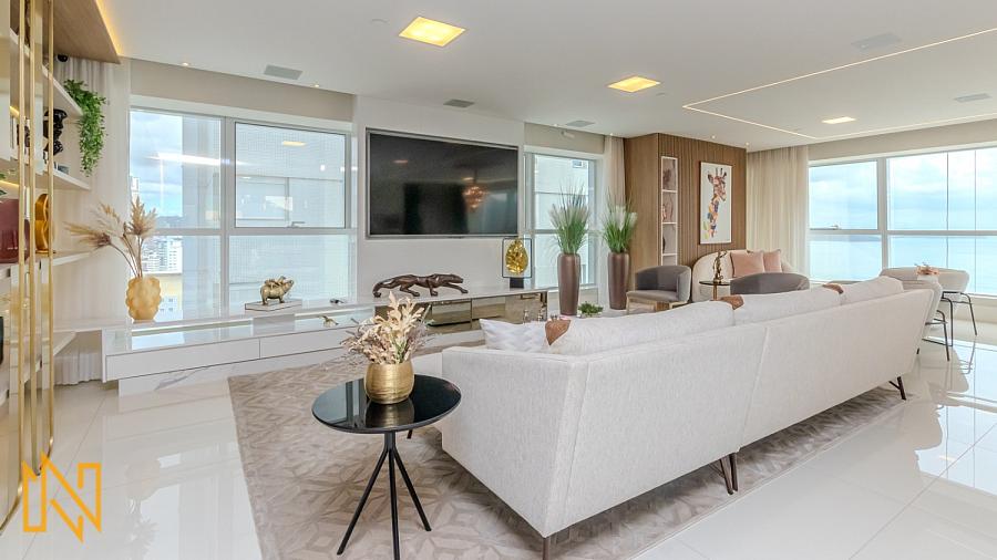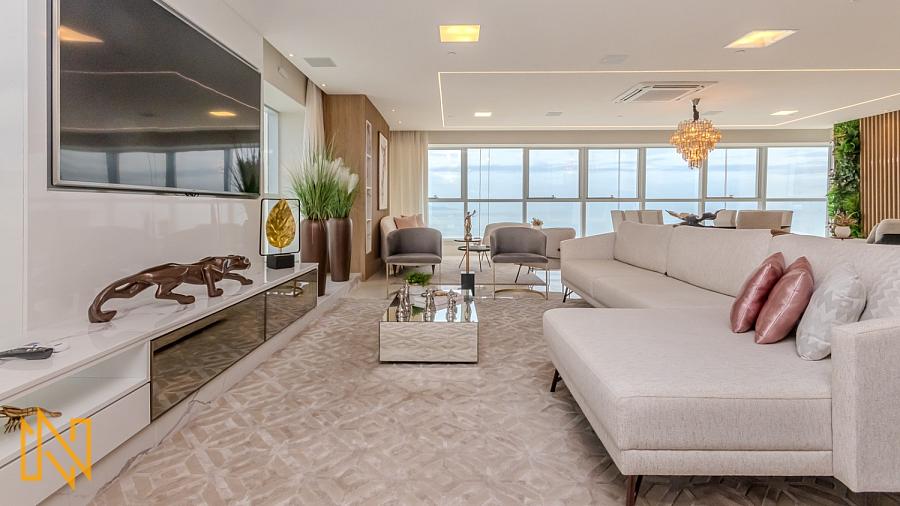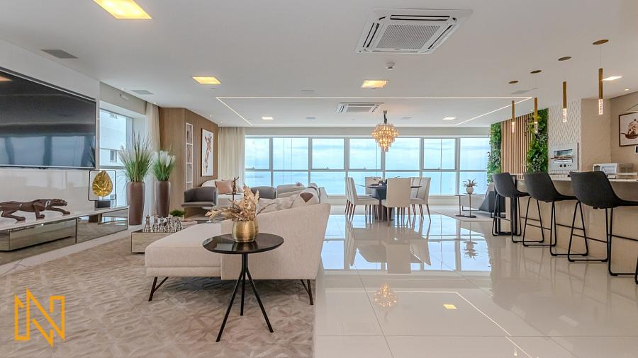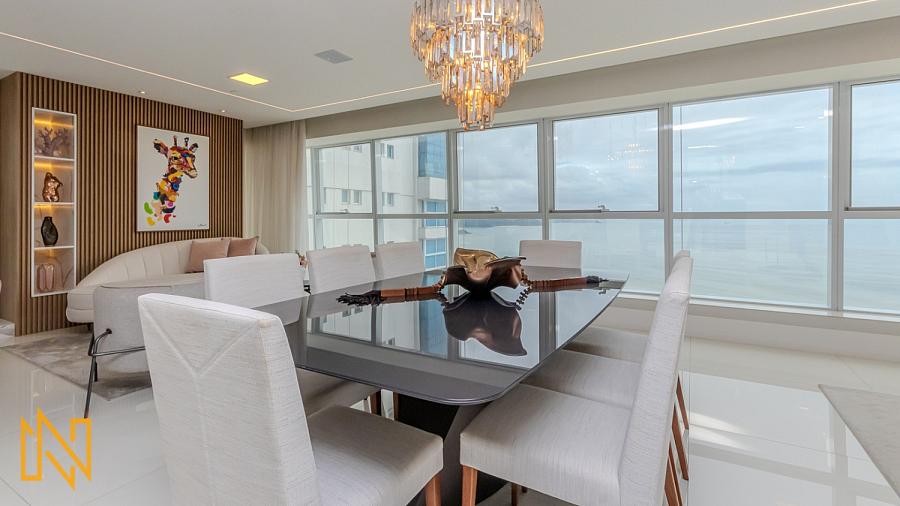 Apartamento em andar alto com 310m² de área privativa, possui 03 Suítes sendo 01 master com hidro e 02 closets, amplo living com uma vista incrível da praia acomodando sala de estar, jantar e cozinha americana, sala de estar íntimo, área de serviço, lavabo, dependência de empregados e 05 vagas de garagem privativas.