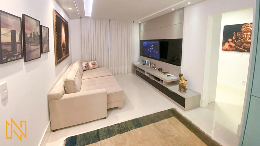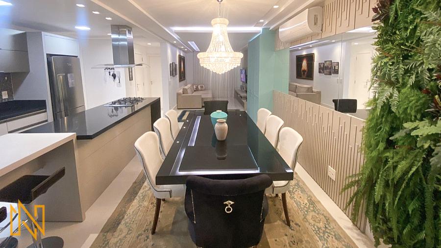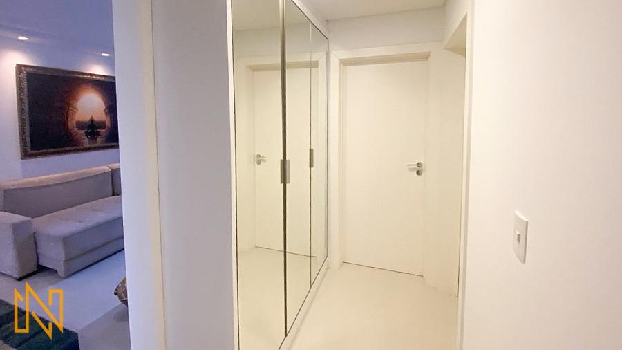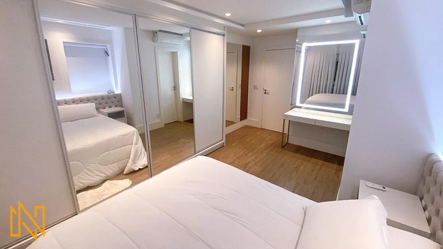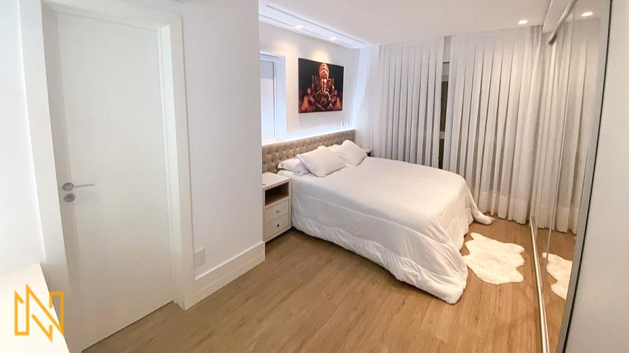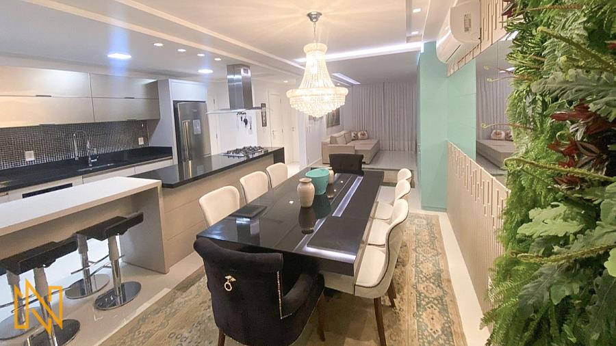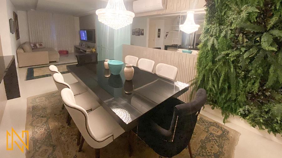 Imóvel encantador, todo mobiliado, conta com 122m² de área privativa, 3 suítes, lavabo, área de serviço, cozinha americana, sala de estar, sala de jantar, living integrado com pequena vista do mar e 2 vagas de garagem privativas.