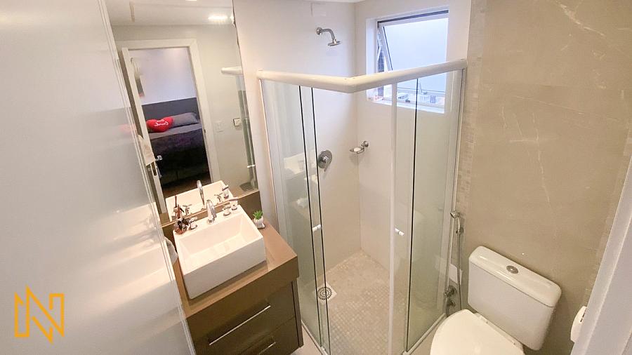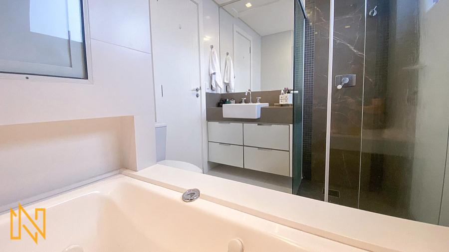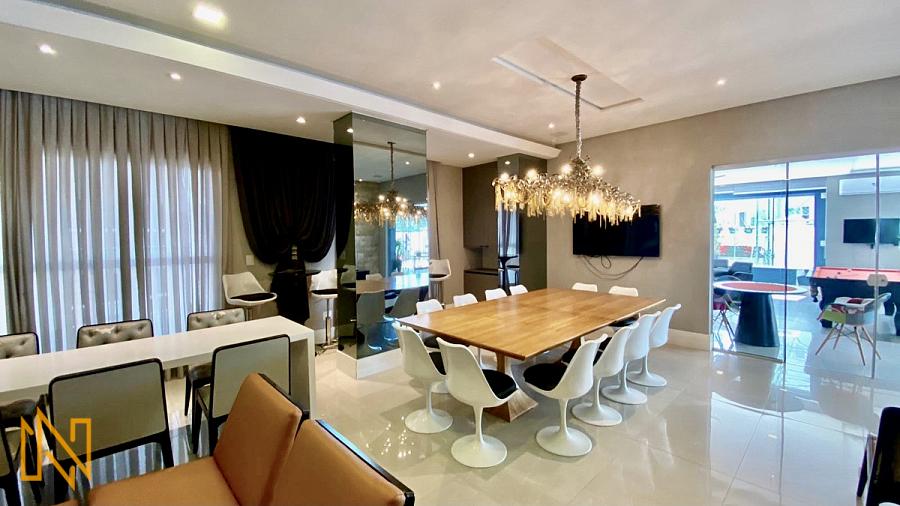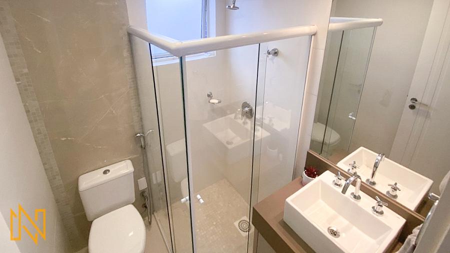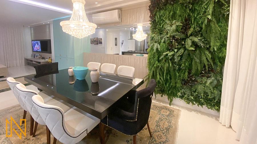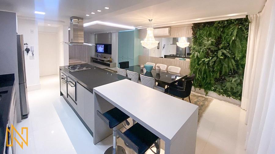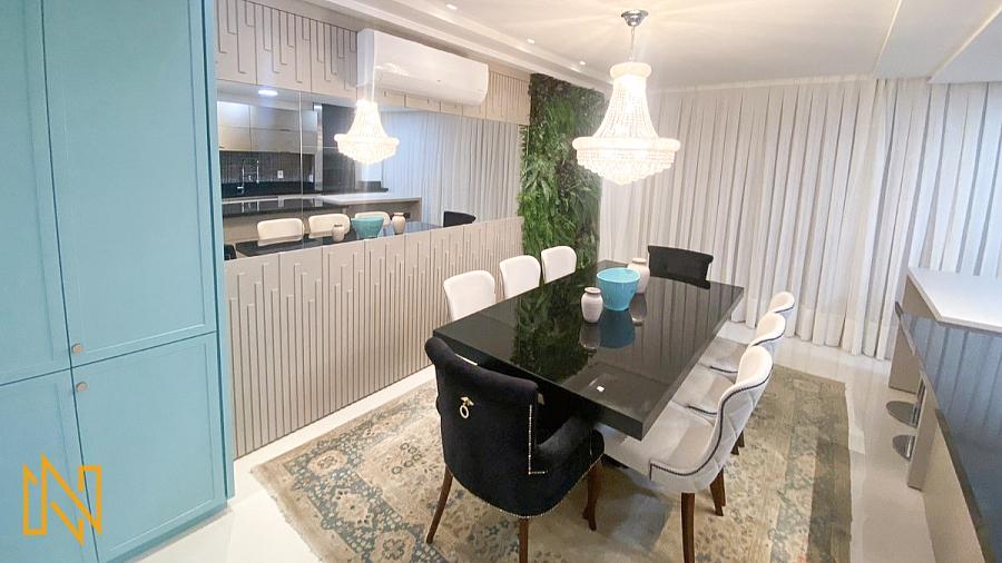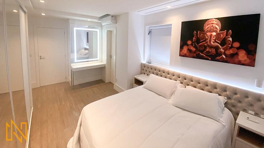 Imóvel encantador, todo mobiliado, conta com 122m² de área privativa, 3 suítes, lavabo, área de serviço, cozinha americana, sala de estar, sala de jantar, living integrado com pequena vista do mar e 2 vagas de garagem privativas.