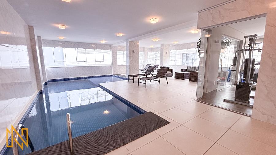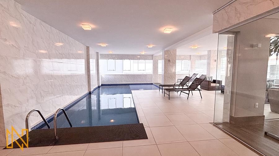Empreendimento conta com piscina aquecida, academia, acesso por reconhecimento facial, elevador e salão de festas.