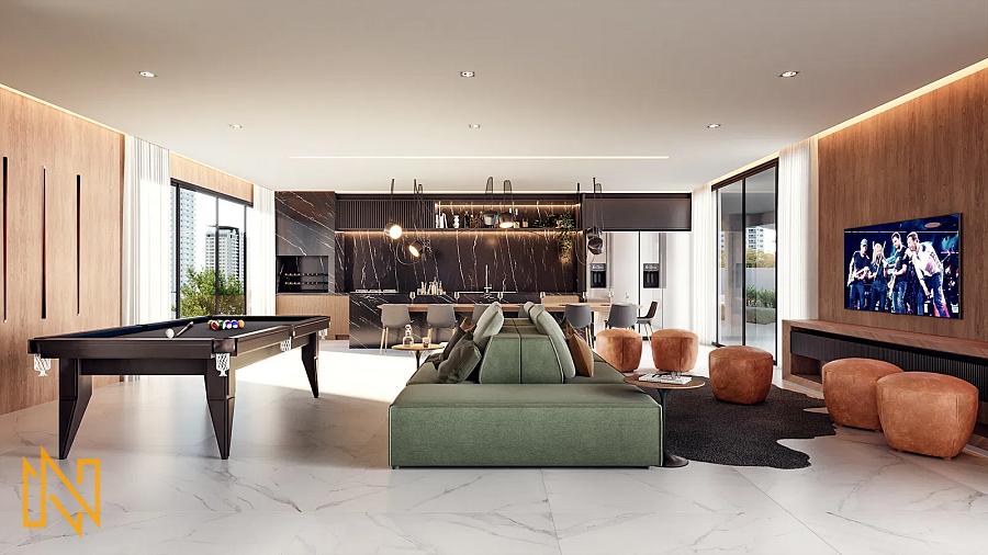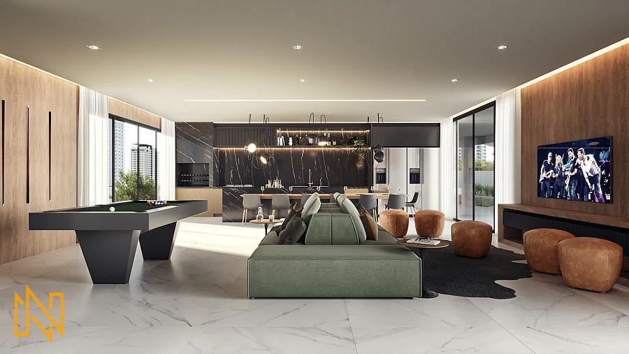 O destaque do Harmony Ocean Front é sua área de lazer impressionante, distribuída por 3 pavimentos completos. Imagine desfrutar de uma piscina aquecida com hidro, enquanto aprecia a vista panorâmica do mar. Relaxe em um lounge garden ou celebre momentos especiais no salão de festas com terraço à beira-mar. Seus dias podem incluir momentos no wine bar, diversão no espaço teen ou brincadeiras com as crianças no salão de festas kids e playground.