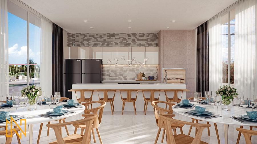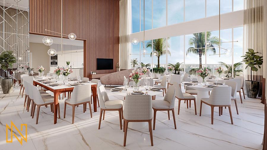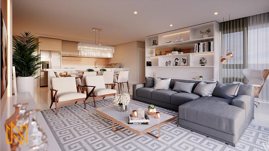 Apartamentos em construção com área privativa de 140m², 04 dormitórios, sendo 02 suítes, cozinha, área de serviço, lavabo, living, sacada integrada, sala de estar, sala par 02 ambientes, churrasqueira a gás, piso em porcelanato, 02 a 03 vagas de garagem.