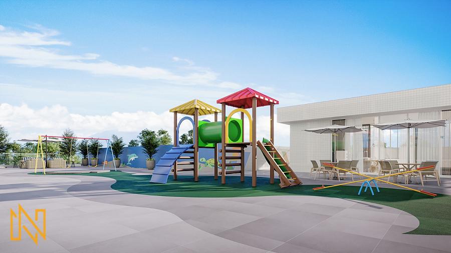 O empreendimento tem automação predial, bicicletário, brinquedoteca, piscina adulto e infantil, playground, quadra esportiva, sala de jogos, salão de festas, sauna, captação de água, câmeras de segurança, gás central, medidores individuais, portão eletrônico, portaria 24h.