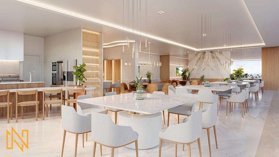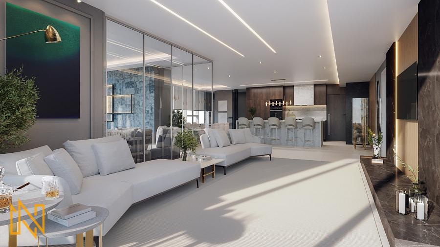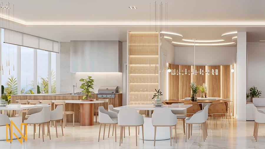 O edifício oferece unidades espaçosas e luxuosas, apartamentos de 4 suítes.