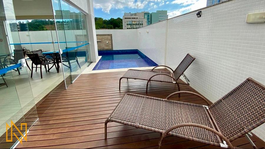 Imóvel mobiliado conta com área privativa de 105m², composto por 2 suítes + 1 dormitório, ampla sala para 2 ambientes, sacada integrada, cozinha, lavabo, churrasqueira a carvão e 2 vagas de garagem privativas.