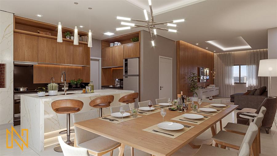 Apartamento tipo 02 com 122,3m de área privativa, com 3 suítes, cozinha, área de serviço, sala de estar, sala de jantar, sacada entregada com churrasqueira a carvão para aproveitar bons momentos com a família e amigos, lavabo, acabamento em piso porcelanato, persianas externas automatizadas, rebaixamento em gesso, fechaduras digitais e 2 vagas de garagem.
