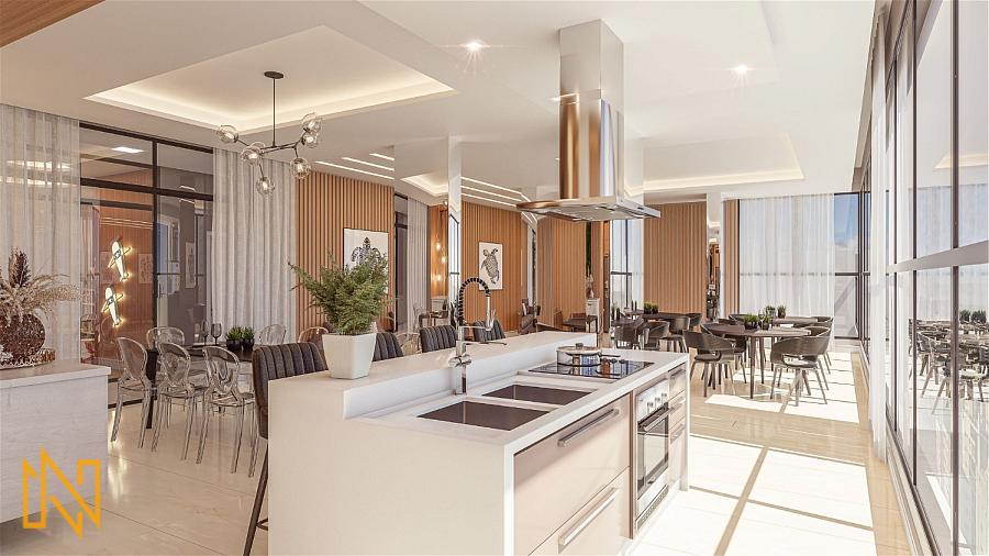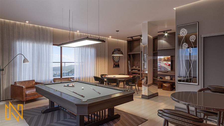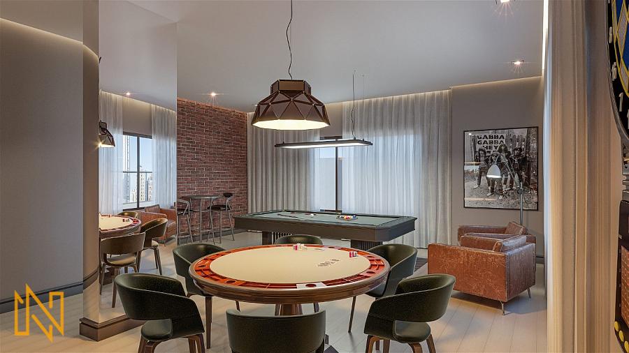 O Empreendimento de alto padrão conta com salão de festas, sala de jogos, brinquedoteca, piscina adulto e infantil, gás central, medidores individuais, lounge externo, espaço gourmet, playground, espaço fitness, gerador de energia e áreas comuns decoradas e mobiliadas.