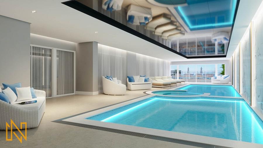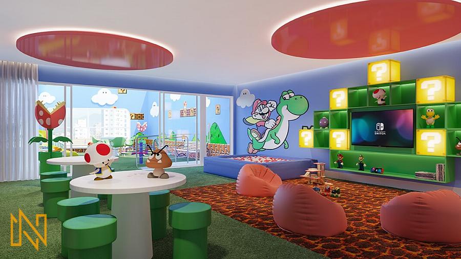 Já as áreas destinadas ao lazer contém: Deck com piscinas, Piscina adulto com spa e bar molhado, Piscina infantil, Terraço descoberto, Piscina adulto aquecida com spa, Piscina infantil aquecida, Sauna, Sala de massagem, Sala de pilates, Academia, Salão de festa, Sala de jogos, Espaço gourmet da piscina, Brinquedoteca, Playground, Fraldário, Banheiros masculino e feminino e Lavabo PNE.