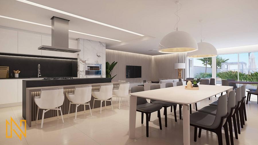 Todos os apartamentos com 4 suítes, sendo 1 máster (com hidromassagem), Living, Cozinha, Lavabo, Área de serviço, Espaço gourmet, 3 Vagas de garagem