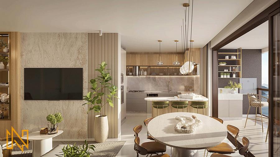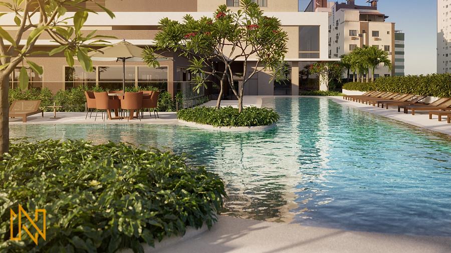 ambientes integrados que aproximam as relações, abundância de luz natural, ventilação priorizando o bem-estar e uma ampla área de lazer com os mais diversos ambientes. o paisagismo é outro detalhe que chama atenção, trazendo a sensação de se estar em meio ao verde, mesmo vivendo bem no centro de uma das cidades mais agitadas do litoral catarinense, onde tudo acontece.
