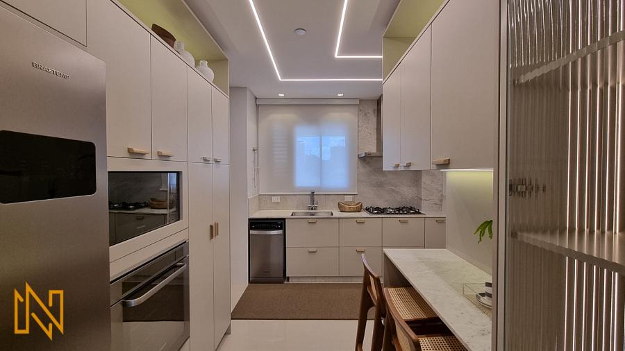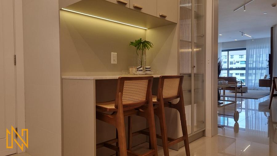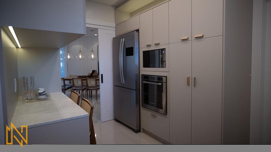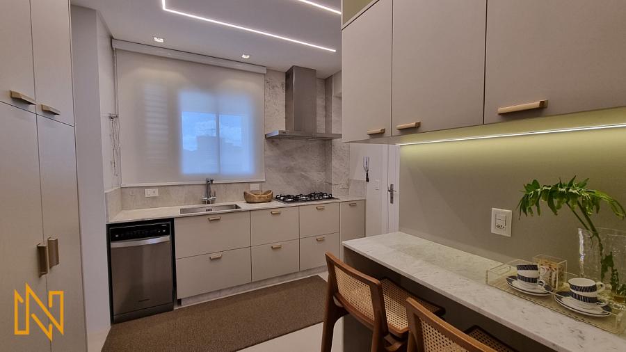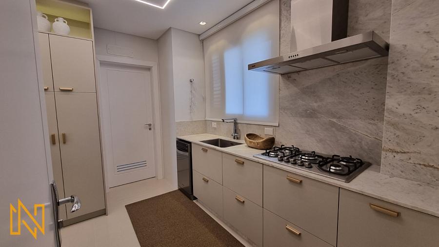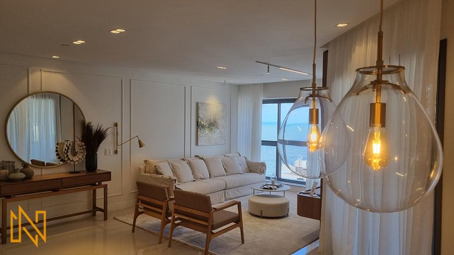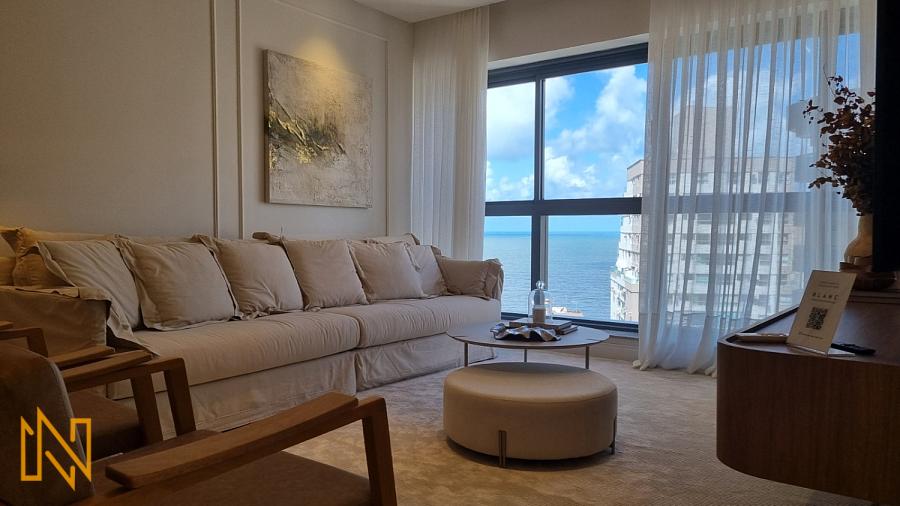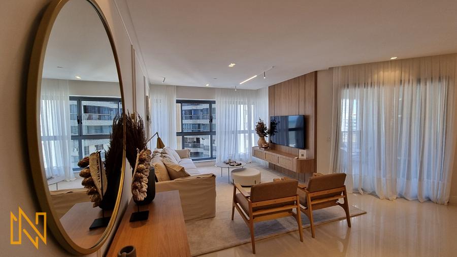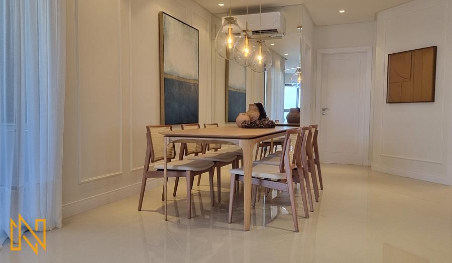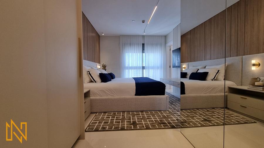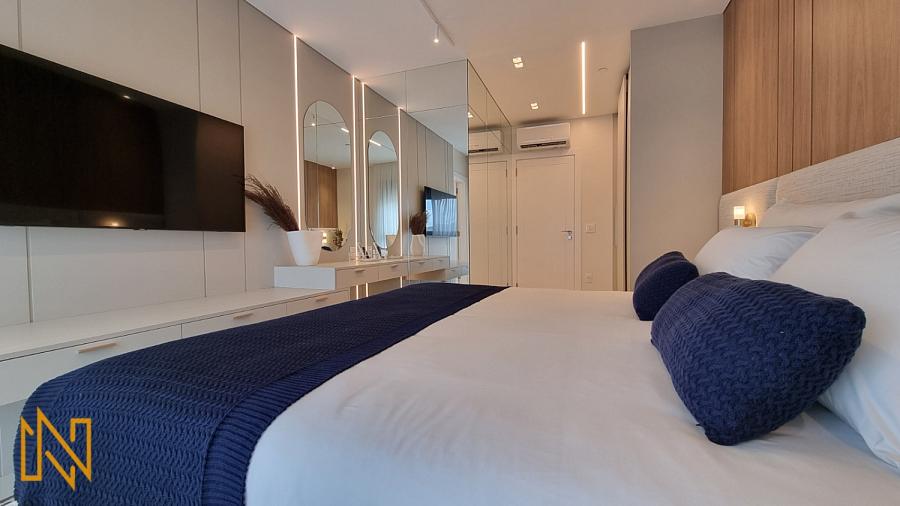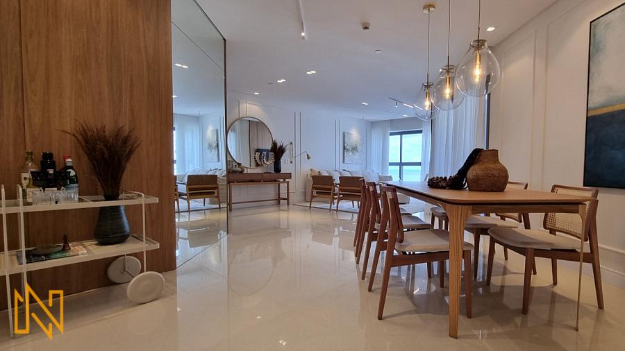 Apartamento na quadra do mar, composto por 4 suítes, lavabo, living, espaço gourmet, sacada com churasqueira, cozinha, sala para 02 ambientes jantar e estar, área de serviço, com 3 vagas privativas e mobília em fase de produção.