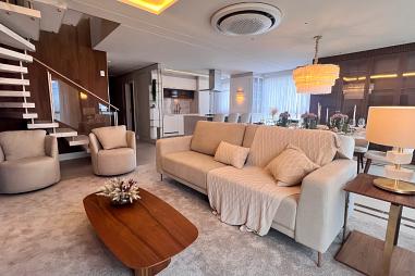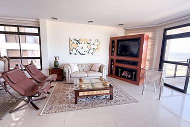 Apartamento na quadra do mar, composto por 4 suítes, lavabo, living, espaço gourmet, sacada com churasqueira, cozinha, sala para 02 ambientes jantar e estar, área de serviço, com 3 vagas privativas e mobília em fase de produção.