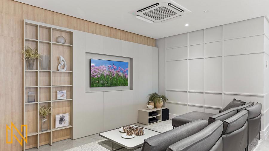 - Acabamentos: Porcelanato, madeira, churrasqueira e ar-condicionado.