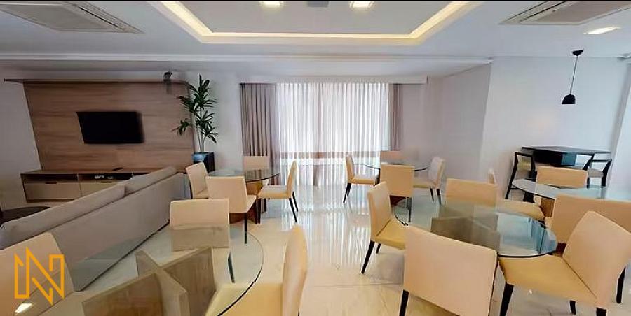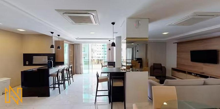 Amplo e elegante apartamento com 143m² de área privativa, localizado em uma das regiões mais tranquilas e valorizadas de Balneário Camboriú. O imóvel conta com 4 dormitórios, sendo 2 suítes e 2 demi-suítes, além de um living espaçoso e integrado, que reúne sala de estar, sala de jantar e espaço gourmet com churrasqueira. Dispõe ainda de lavabo, área de serviço e 2 vagas de garagem.