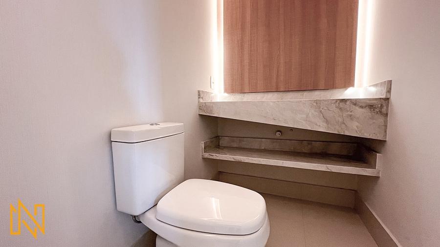 Ao adentrar neste elegante espaço, você é recebido por uma ampla sala de estar, ideal para receber visitas e desfrutar de momentos de convívio com a família. A cozinha, em processo de mobília planejada, apresenta um layout moderno e funcional, perfeito para os entusiastas da culinária. Além disso, um lavabo adiciona praticidade e comodidade para os moradores e seus convidados.