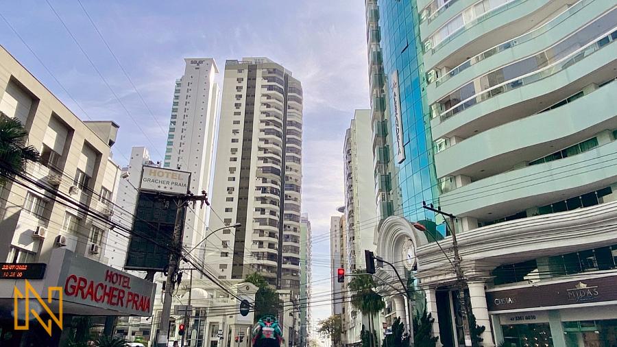 Edifício localizado em rua reta ao mar de Balneário Camboriú