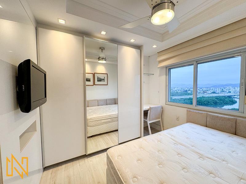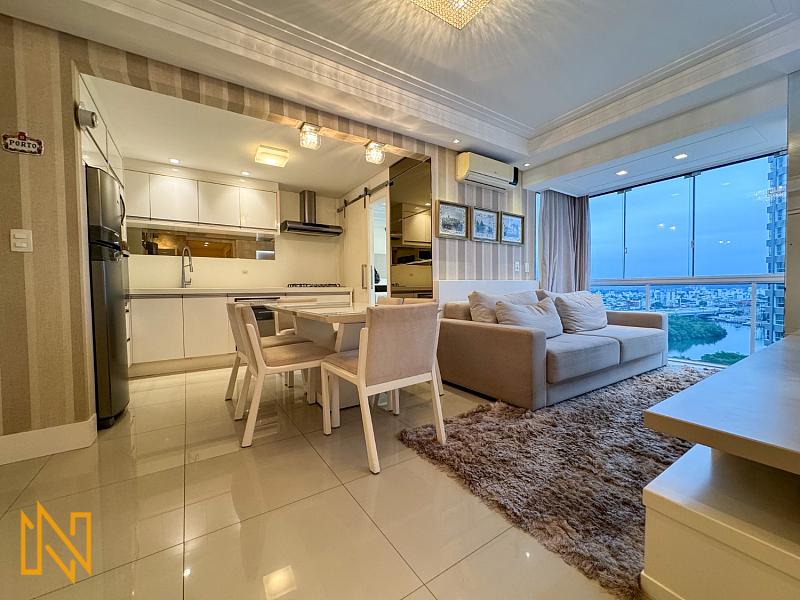 Apartamento à venda com 2 dormitórios, sendo 1 suíte, ideal para quem busca conforto, praticidade e um ambiente moderno. O imóvel conta com cozinha americana integrada à sala de jantar e estar, área de serviço, banheiro social e um banheiro auxiliar. Possui acabamento em gesso, piso em porcelanato e está equipado com ar-condicionado, armários embutidos e móveis planejados, incluindo armário na cozinha. Conta ainda com espera para split, interfone, vista panorâmica e uma vaga de garagem. Tudo isso em um espaço bem distribuído, com excelente infraestrutura e pronto para morar.