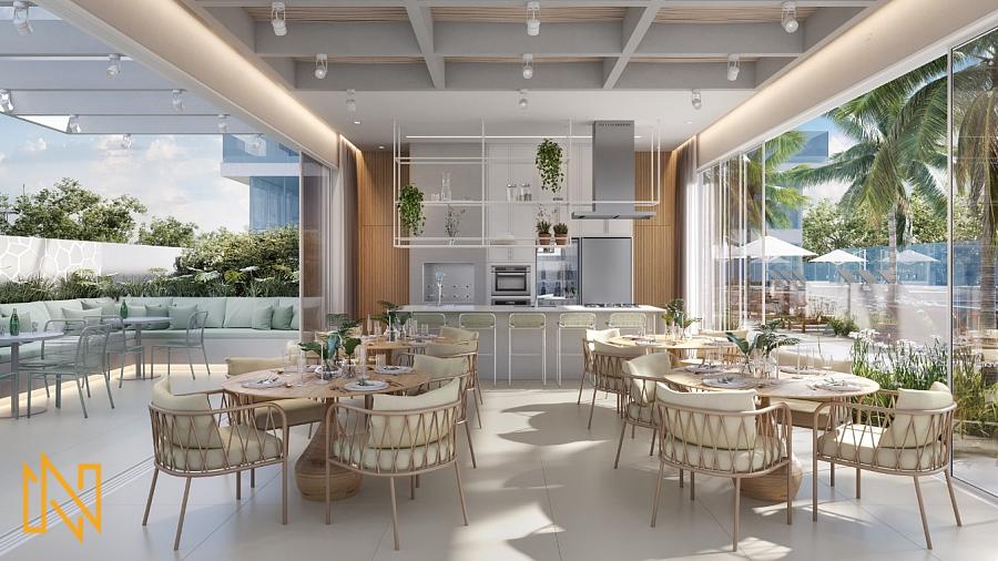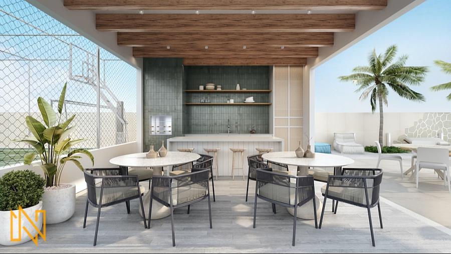 Serão mais de 2300m² de área de lazer distribuidos em 02 pavimentos, o lazer 01 com piscina com borda infinita, salão de festas, espaço gourmet, brinquedoteca, playground, sala de jogos, quadra poliesportiva, gazebo, terraço lounge, pergolado/quiosque. Lazer 02 com academia, espaço beauty, sala de massagem, sala de pilates, sauna úmida, spa, espaço de relaxamento e Rooftop com cozinha gourmet, terraço com pergolado, lareira, lounge.