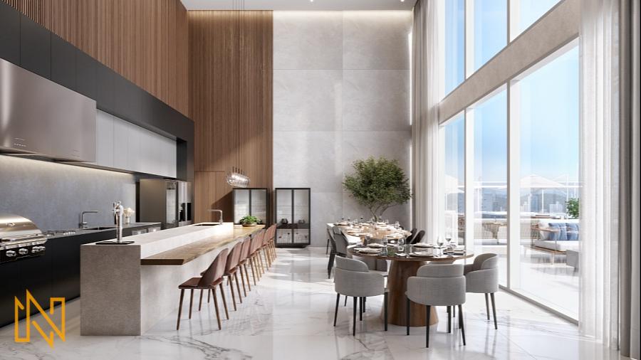 Possuirá 59 pavimentos sendo 02 apartamentos por andar, área privativa de 146,52m², 4 domitórios sendo 2 suítes + 2 demi-suítes e 03 vagas de garagem.