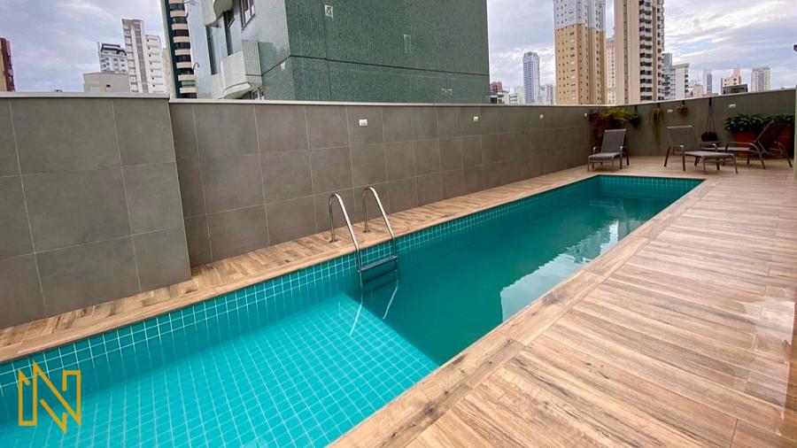 Infraestrutura do prédio: Salão de festas, piscina, sistema de segurança.