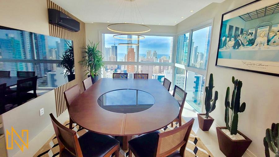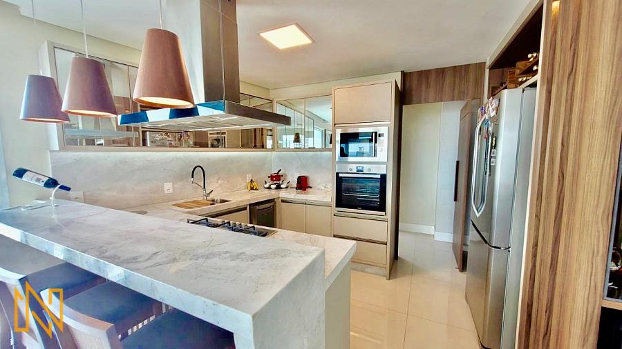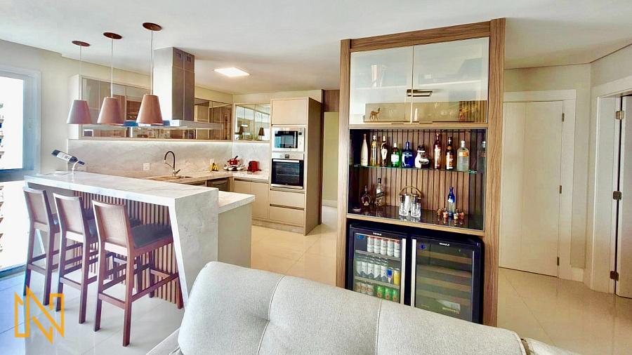 Imóvel com amplo espaço, mobiliado e decorado. Possui 03 Suítes, Sala para 2 ambientes, cozinha americana, lavabo, área de serviço e 4 vagas de garagem privativa.