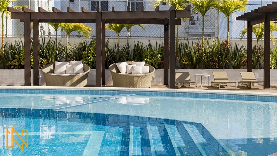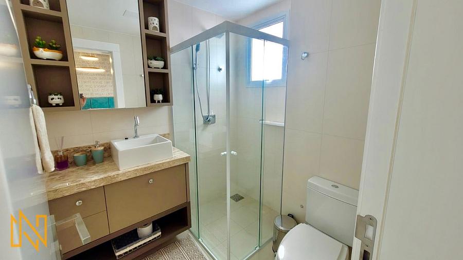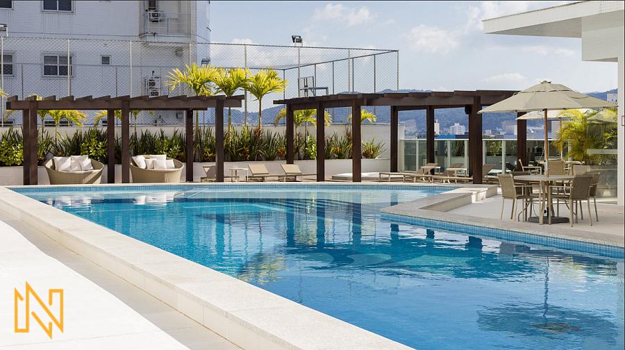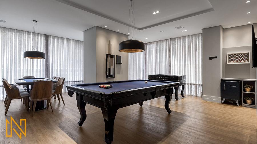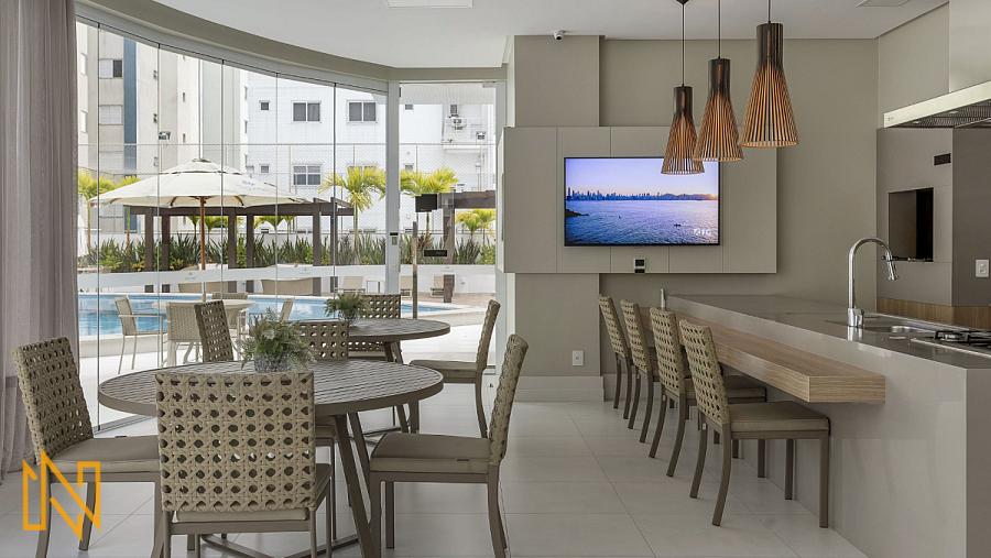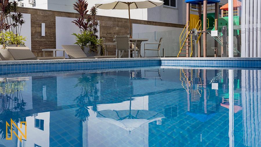 O Empreendimento tem 43 pavimentos, 02 apartamentos por andar, 03 elevadores, sala de jogos, amplo salão de festas, piscina aquecida 24h, quadra esportiva, spa, espaço gourmet, espaço fitness, playground, academia, quiosque externo, piscina infantil, bicicletário, gás central, box de praia, automação predial, câmeras de segurança.