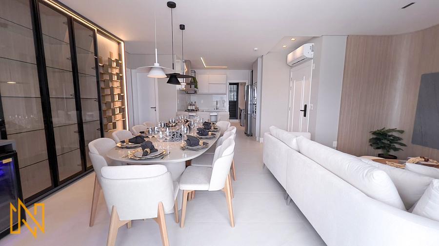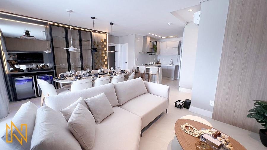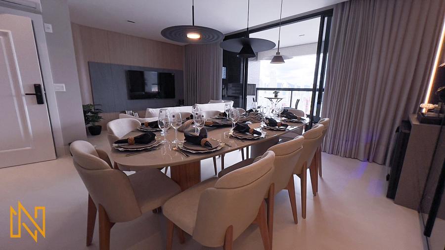 Ao entrar no apartamento, você é recebido por uma ampla sala de estar que se estende até uma varanda espaçosa, onde você pode desfrutar de momentos de relaxamento e contemplação. A área de jantar adjacente é perfeita para refeições em família ou para receber convidados.