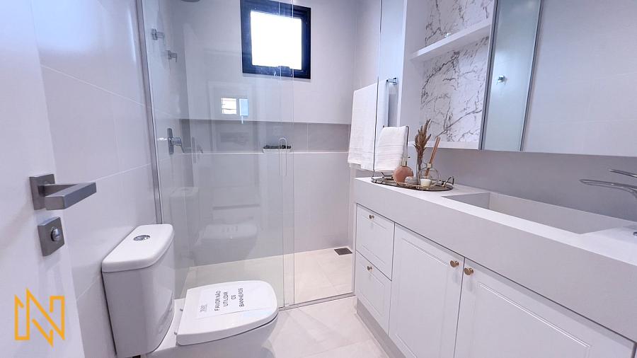 O apartamento dispõe de quatro dormitórios, proporcionando privacidade e conforto para toda a família. Os quartos são luminosos e arejados, criando um ambiente acolhedor para relaxar após um longo dia.