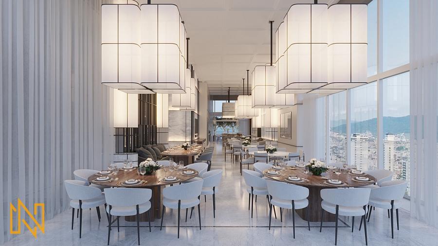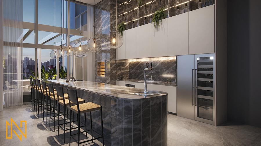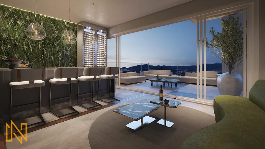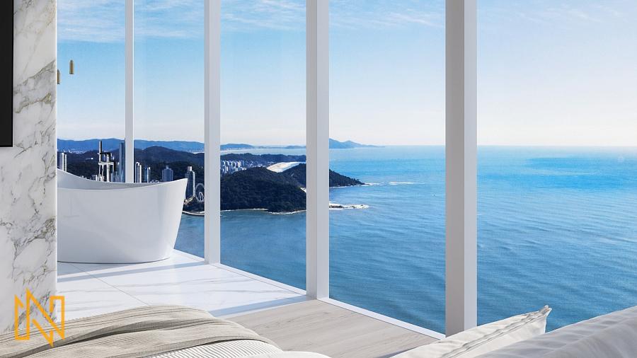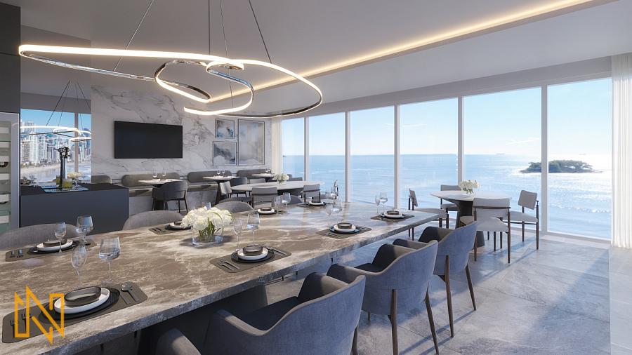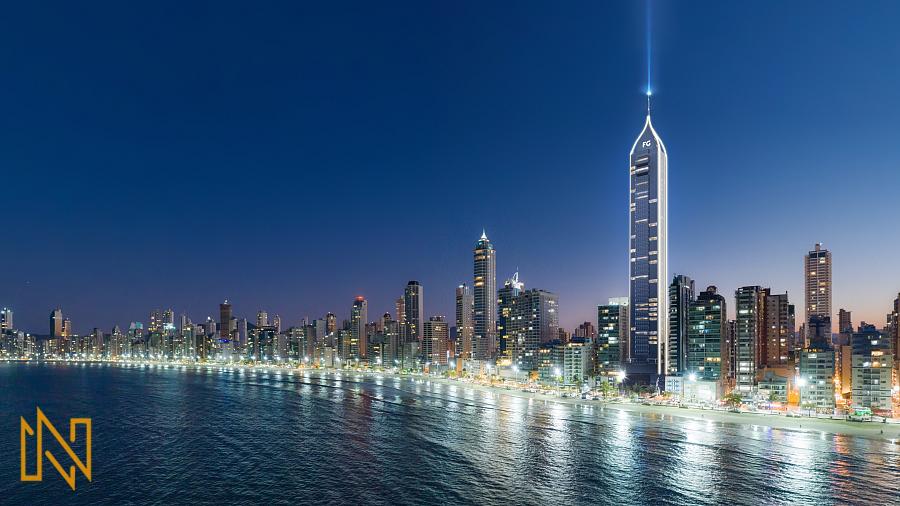 O imponente empreendimento contará com 240 metros de altura, sendo 57 pavimentos, 3 pavimentos de garagem, 2 coberturas, 3 duplex e 35 apartamentos tipos, exclusividade de ter 1 apartamento por andar com 343,73m² privativos, ambientes amplos e totalmente integrados, 4 suítes sendo uma master com sala de banho, hidromassagem e closet, amplo living acomodando sala de estar e jantar, e abertura total do living com guarda corpo estrutrado, Endless View, sala de tv, estar intímo, lavabo, cozinha, churrasqueira a carvão, banheiro de serviço, área e serviço, possui uma piscina privativa e hidromassagem, piso aquecido no banheiro da suíte master, piso porcelanato e infraestrutura completa.