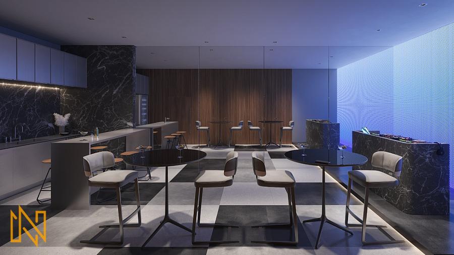 Com mais de 1800m² de área de lazer distribuidos em 2 pavimentos, sendo o lazer 1 com piscina com borda infinita, piscina aquecida, quiosque gourmet com churrasqueira a carvão, salão de festas, mini quadra esportiva, playground, sala de jogos, lounge, sauna e spa, e no lazer 2 wine bar, dance, bistrô, academia, massagem, espaço beauty, terraço descoberto.