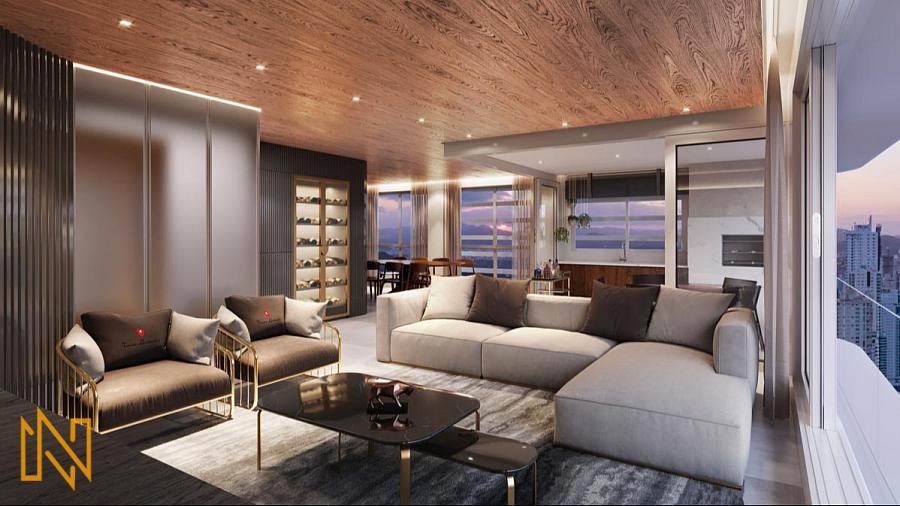 Com uma área privativa de 194 m², o apartamento oferece 4 suítes, sendo uma máster com hidromassagem e um espaçoso closet. O living integrado à cozinha gourmet cria uma atmosfera perfeita para receber com estilo e praticidade. O imóvel conta ainda com 3 vagas de garagem, uma delas equipada com ponto de recarga para veículos elétricos, além de uma sacada com churrasqueira à carvão, ideal para momentos de lazer e contemplação.
