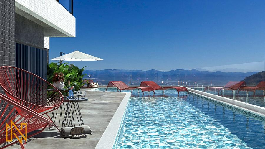 Empreendimento conta com 20 Pavimentos, Área de lazer completa com 13 ambientes, 02 Elevadores, Box de praia privativo, Medidores individuais de água e gás, Gerador de energia para elevador e áreas comuns, Segurança por câmeras, Pontos para carregadores de carros elétricos, Sala de jogos, Salão de festas, Salão gourmet, Espaço kids, Espaço pet, Espaço yoga, Espaço zen, Playground, Academia, Piscina, Elevador, Medidores de água, luz e gás individuais, Entrada p/ banhistas e box de praia