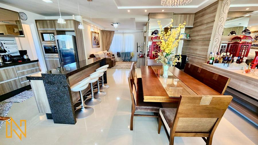 Além disso, o apartamento possui uma área de serviço conveniente e duas vagas de estacionamento privativas lado a lado, garantindo praticidade no seu dia a dia. O amplo living, a sala de jantar e a sala para dois ambientes proporcionam um ambiente espaçoso e aconchegante para toda a família.