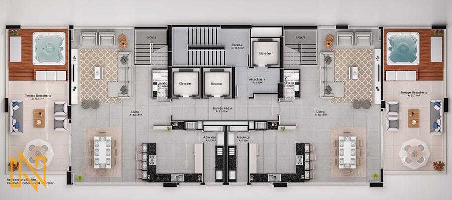 - 02 Apartamentos Duplex Diferenciados com área privativa de 238,13m², Terraço Descoberto com 24,83m² com SPA