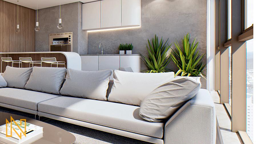 Living integrado com espaço gourmet, ideal para receber com elegância;