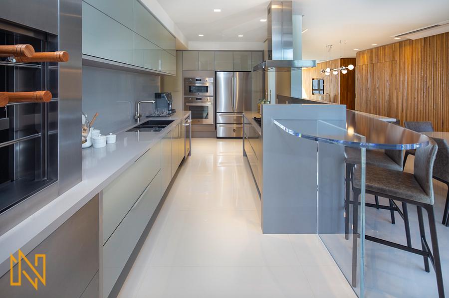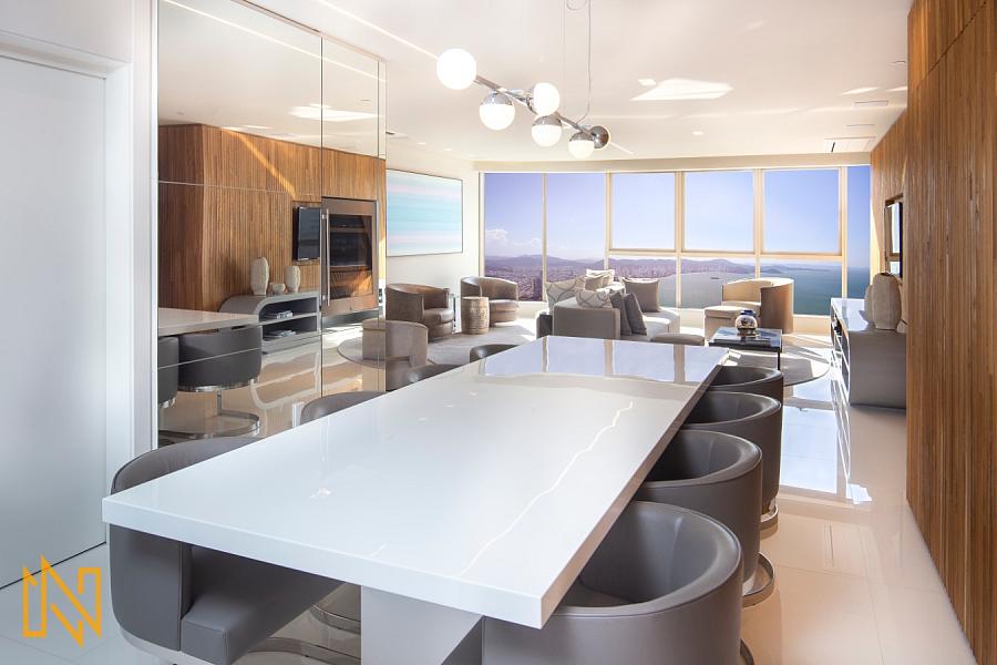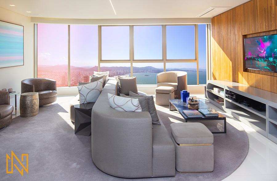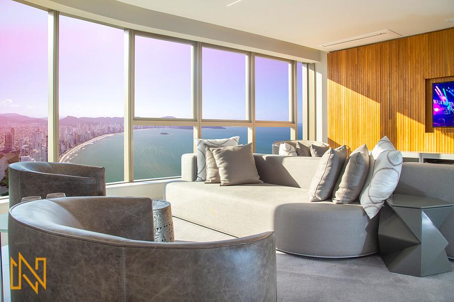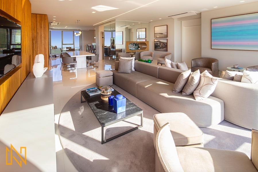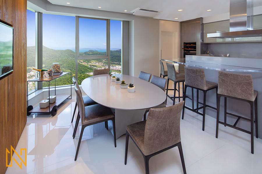 Cada apartamento conta com: Living, com vista mar, Espaço gourmet vista para mata e marina; Cozinha semi integrada; Lavabo ; Área de serviço; Área técnica; Dependência de empregada com banheiro; 4 suítes, sendo 1 master entregue com banheira de hidromassagem, uma semi master e duas convencionais.