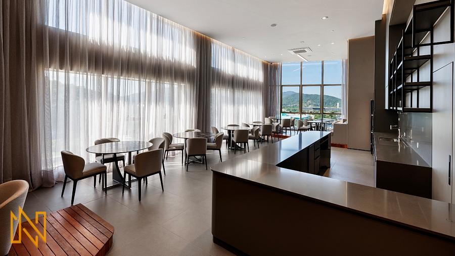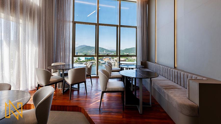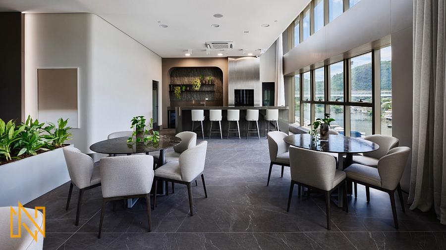 O hall privativo abre para um living imponente de mais de 52 m², integrado à sacada gourmet de 13 m² com vista para a marina e mata – perfeito para apreciar o pôr do sol enquanto o jantar rola. Cozinha semi-integrada, lavabo elegante, área de serviço funcional e dependência de empregada com banheiro completo garantem praticidade sem abrir mão da sofisticação. Quatro suítes amplas, com destaque para a master de 26 m² equipada com banheira de hidromassagem – um oásis particular após um dia intenso. Pé direito alto (3,24 m laje a laje), piso porcelanato indiano nas áreas sociais e vinílico nas íntimas, portas Trada de madeira maciça laqueada para isolamento acústico superior. Preparação para automação, ar-condicionado, aquecimento nos pisos dos banheiros e aspiração central – detalhes que elevam o conforto diário a outro patamar.